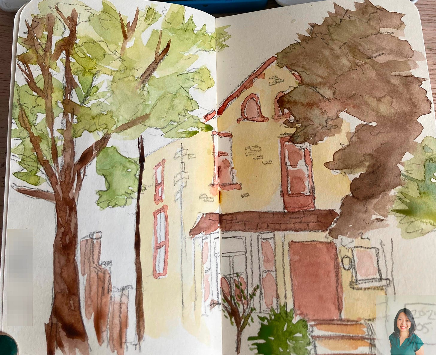 A couple of months ago, I sat on a neighbouring street with an A6/pocket-sized sketchbook and loosely traced the outline of the house across from me. I captured the Japanese maple in its front lawn with a few quick strokes and continued on my run. The more I ran and walked on this same route, the more I noticed the Little Free Libraries dotted along the street. Each small wooden cupboard with a roof and a door could hold about twenty books, all free and available for borrowing and exchanging; the only rule is to share books as you take books when you can.